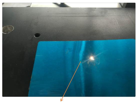 g) 在鏡頭下面載物臺上放上一張金屬名片或金屬板,打開激光,確定激光焦點
